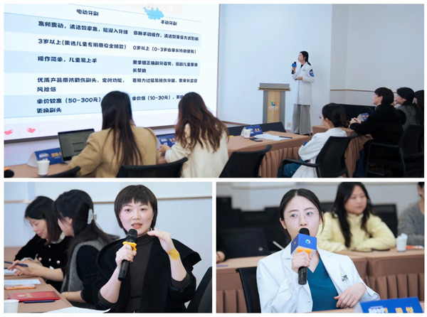 比赛现场精彩纷呈,参赛选手们各展所长,将刷牙科普变成了一场场生动有趣的教学互动。有的娓娓道来,针对不同年龄儿童详细介绍如何选择及使用口腔护理产品;有的结合朗朗上口的刷牙儿歌,同步演绎对应刷牙动作,让科普内容更具趣味性和记忆点;有的巧妙利用刷牙道具和牙齿模型,一步步示范正确刷牙方法,让抽象知识瞬间变直观;更有选手俯身亲自为小朋友刷牙,在手把手引导中,传递刷牙方法的每一个关键细节。