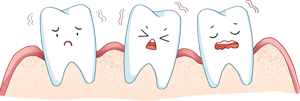 表现:牙齿摇摇欲坠,开始脱落,移位