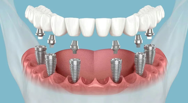 这是种植牙的收尾步骤,最终实现牙齿的咀嚼功能和美观效果。