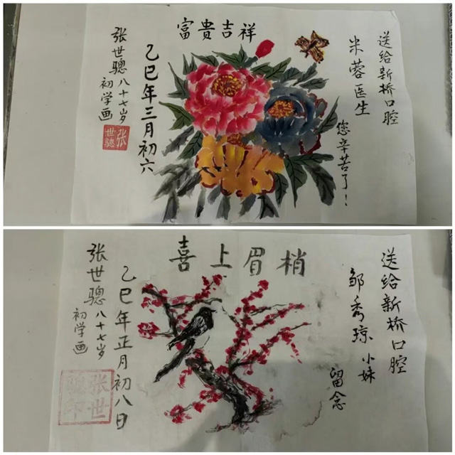 【新桥口腔自贡院区】顾客张先生将感激凝于笔端,一幅幅精心创作的手工画,画中流淌着对医护专业与关怀的真诚认可。